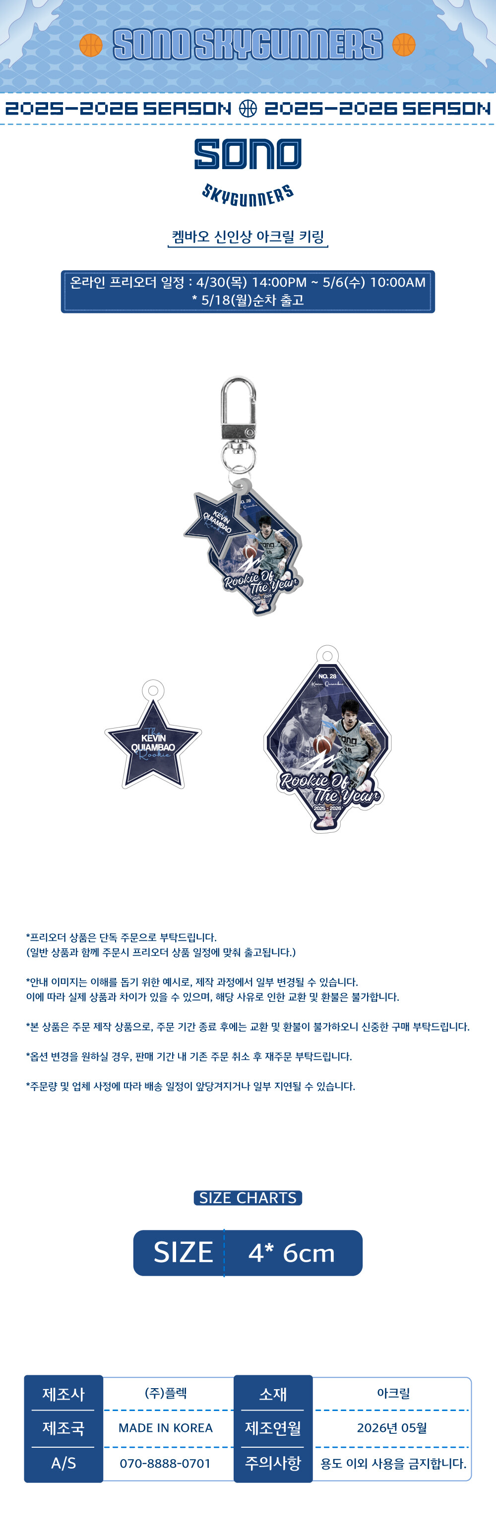 25-26 고양 소노 케빈 켐바오 신인상 아크릴 키링