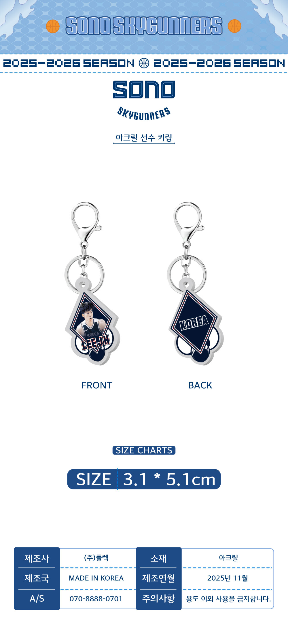 농구국가대표 이정현 아크릴 선수 키링